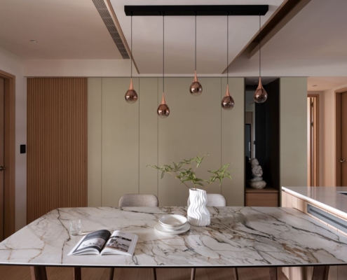 我們透過建築概念的設計手法,善用空間的先天條件,轉化空間原本的限制,融入光、風、水、綠的自然元素,以光影紀錄時間,用材質營造氛圍,打造空間的和諧境界。